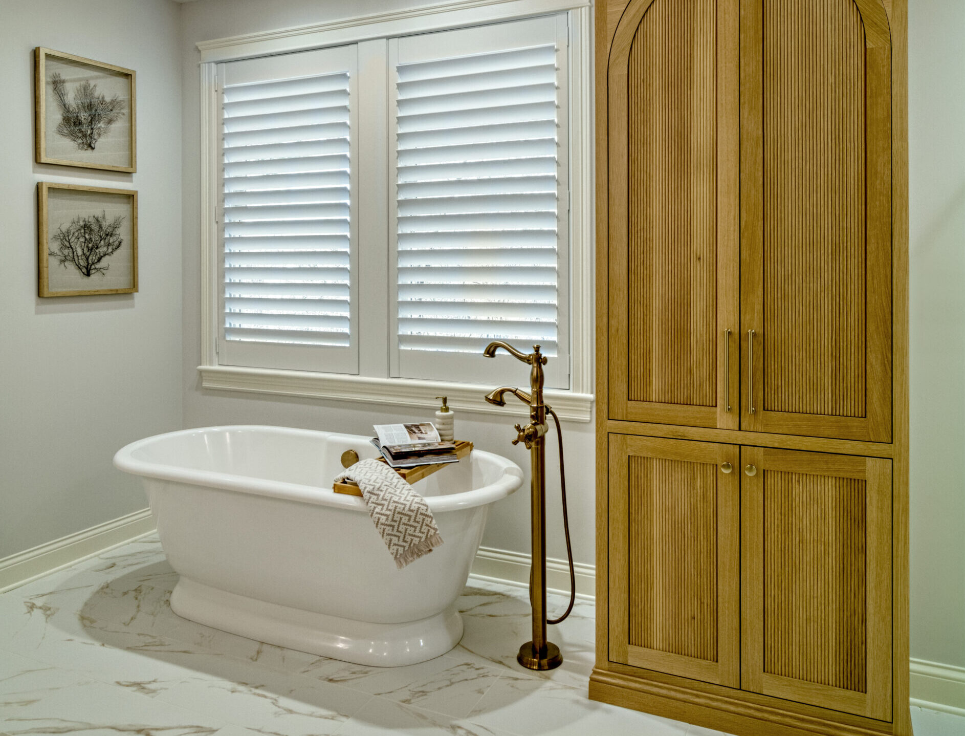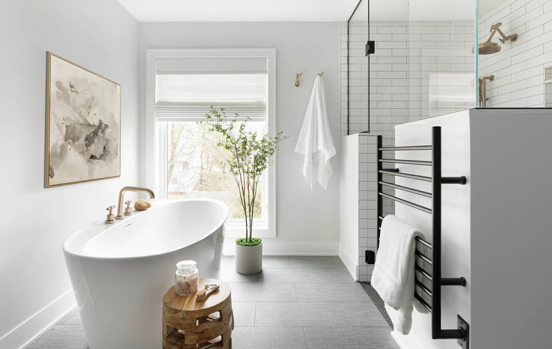 Of course, a gorgeous soaking tub is a must for any primary suite retreat! Nothing says rest and relaxation like a long, lazy, sudsy bath with Epsom salts.